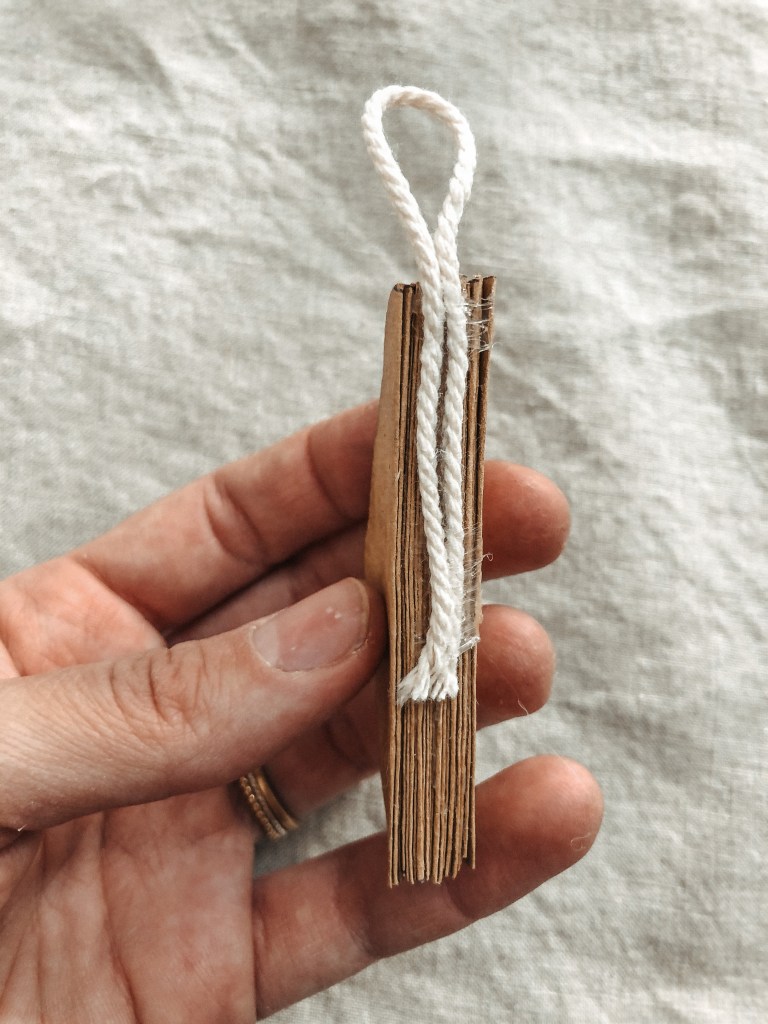 7. Schritt: Die zwei Enden zusammen kleben. Und die Holzkugel auffädeln.
