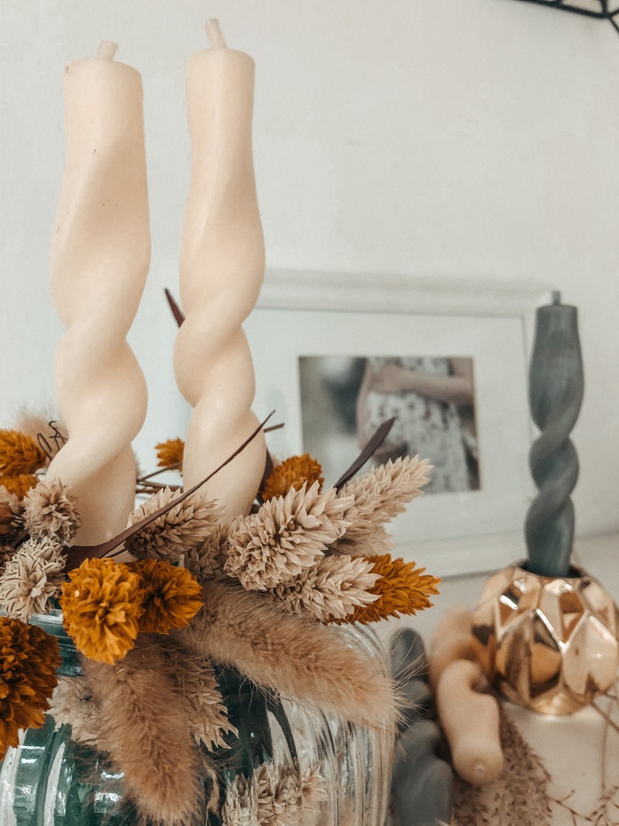 - Schritt: Die gewünschten Trockenblumen noch vor der Trocknung in die Masse hinein drücken und ca. einen Tag trocknen lassen.